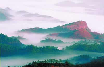 丹霞山不僅風(fēng)景奇秀,而且生物資源豐富。這里屬中亞熱帶季風(fēng)氣候,氣候溫和,雨量充足,年平均溫度20度,年降雨量1640毫米,植物種類繁多,生長茂盛,主要植被為中亞熱帶常綠闊葉林。經(jīng)鑒定樹齡一百年以上的名樹古木有28株,其中三百年以上的有14株,“丹霞梧桐”更是世界上丹霞山最為著名的花卉,其品種有春蘭、寒蘭、白蘭、墨 蘭、劍蘭、蕙蘭、二葉蘭等數(shù)十種,又以白墨、綠墨、鳳尾、報(bào)歲等最為名貴。1987年,這里發(fā)現(xiàn)的一株 “達(dá)摩蘭”更是稀世珍品,當(dāng)時(shí)世界上只發(fā)現(xiàn)兩株(另一株是在臺灣達(dá)摩廟發(fā)現(xiàn),“達(dá)摩蘭”的名字即由此而來)。這株丹霞達(dá)摩蘭,當(dāng)年在香港年花市出時(shí)標(biāo)價(jià)高達(dá)100萬港元。每到花開季節(jié),丹霞蘭滿山飄香,游人循香覓跡,別有一番情趣。丹霞山區(qū)出產(chǎn)的“白毛尖茶”則是久負(fù)盛名的特產(chǎn),是綠茶中的珍品,清代嘉慶年間曾為宮廷貢品。其茶牙粗壯,密披銀白色的毫毛,茶湯清澈黃亮,味甘醇,有一股天然的蘭花清香,為我國三大白毛名茶之首,曾在林業(yè)部“林業(yè)名優(yōu)物新博覽會”上榮獲金獎(jiǎng)。