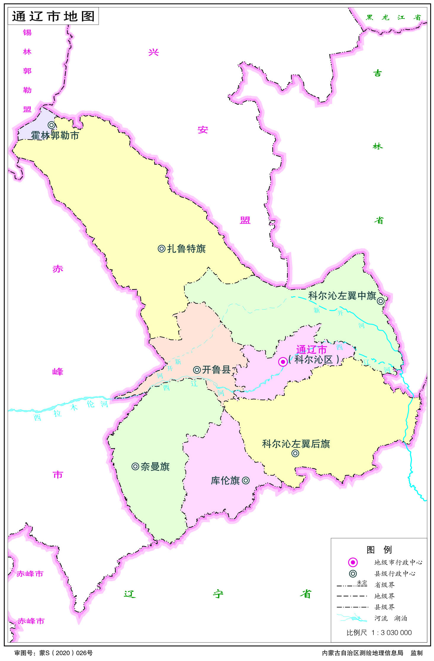通遼市轄1個市轄區(qū)、1個縣、5個旗,代管1個縣級市: