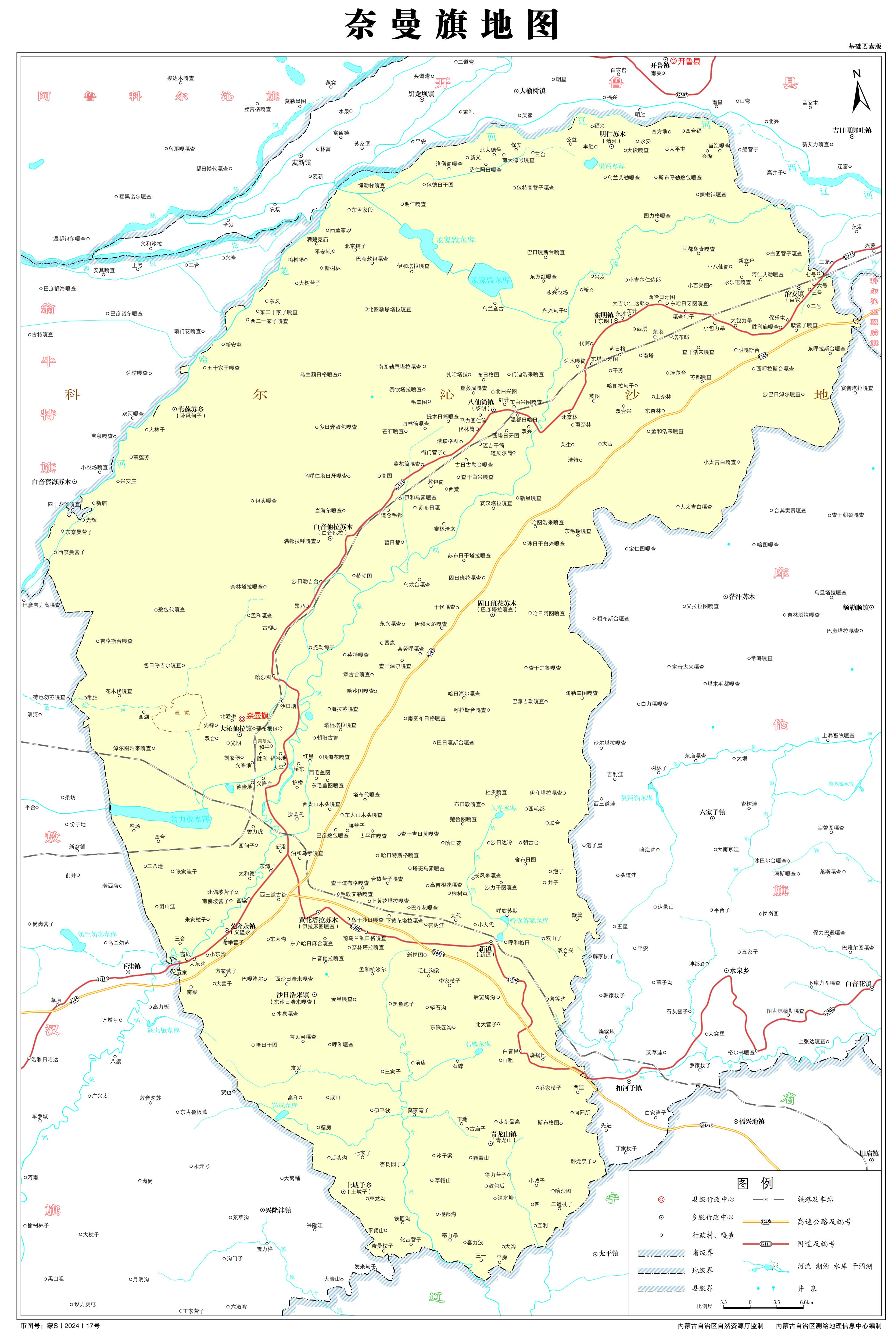 奈曼旗轄8個(gè)鎮(zhèn)、4個(gè)蘇木、國(guó)有六號(hào)農(nóng)場(chǎng):