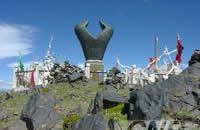 神奇、美麗、富饒的果洛藏族自治州風(fēng)光幽美奇異,有插入云天的陡峭雪峰,有遮天蓋地的原始森林,有蜿蜒流淌的源頭溪流,有宛如明鏡的海子湖泊,有廣袤千里的金色草原,有數(shù)以萬計的牛羊駿馬……全州境內(nèi)有旅游景點70余處,其中江河源頭、阿尼瑪卿峰為國家級旅游景點二處,瑪沁縣的阿尼瑪卿峰、瑪多縣的江河源頭、久治縣的年寶葉什則、瑪沁縣拉加寺、瑪多縣扎陵湖、鄂陵湖、班瑪縣的原始森林及子木達(dá)紅軍溝、哨所、扎洛村、果洛先民遺址,瑪多縣莫格德哇遺址、久治縣白玉寺等省級旅游景點十二處,州、縣級旅游景點61處。全省對外開放的九座山峰中果洛境內(nèi)就有阿尼瑪卿峰、年寶葉什則、雅拉達(dá)則和措哇尕則等四座,大部分地區(qū)未曾經(jīng)過人類的“改造”、“干預(yù)”、“雕塑”,完整地保留著自然界的本來面目。這奇景妙地,天然造就,獨樹一幟,實為奇觀。