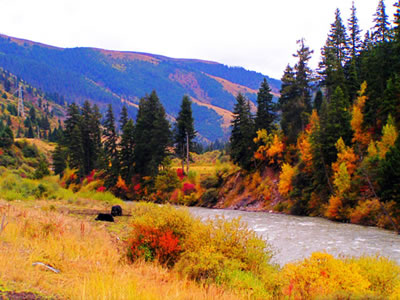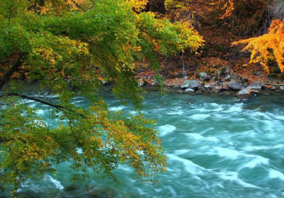 三千三百道溝,三千三百道梁,溝溝有紅葉,溝溝有融雪,溝溝有泉涌。山被紅葉遮掩,水被紅葉浸染,道被紅葉鋪成,一簇簇、一團團燃成米亞羅秋的火焰。雪山,溫泉,森林,紅葉,藏羌文化,構成一個神奇的紅色夢幻走廊。