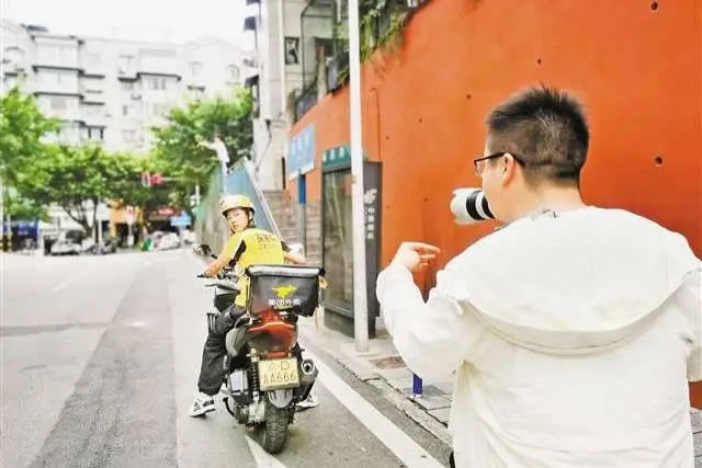 ▲梁平核桃灣,攝像師在拍攝微電影《追風少年》中的外賣小哥片段。(梁平區(qū)融媒體中心供圖)