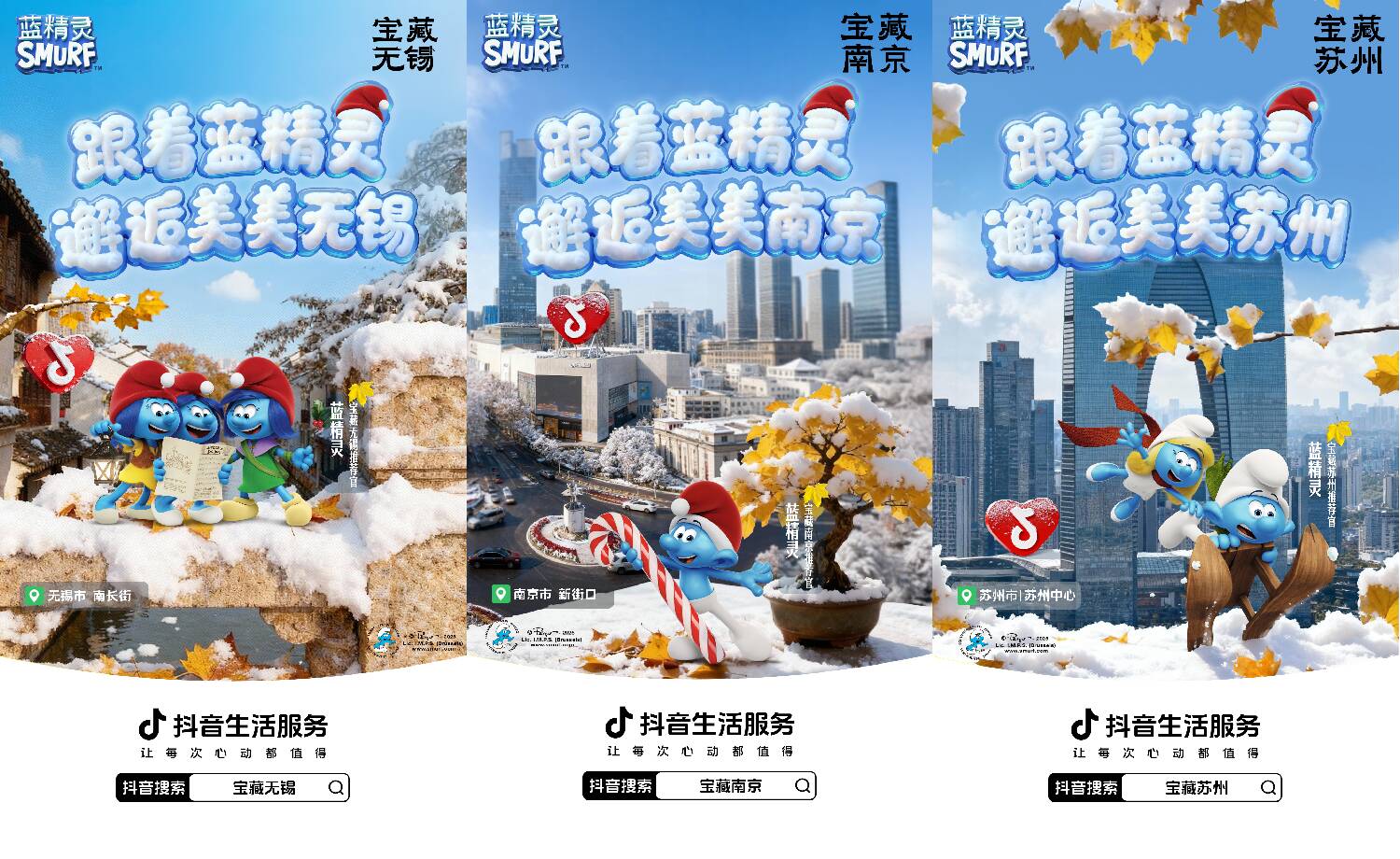 藍(lán)精靈IP的加入,則讓江南秋冬更添童趣。抖音生活服務(wù)打造藍(lán)精靈主題“美美巴士”,在南京、蘇州、無錫三城核心商圈與景區(qū)巡游,用戶打卡合影、帶話題發(fā)視頻即可領(lǐng)取限定周邊與商家優(yōu)惠券。與此同時(shí),“城市隱藏藍(lán)精靈”打卡活動(dòng)同步上線,聯(lián)動(dòng)40多個(gè)商家鋪設(shè)主題物料,用戶跟著巡游地圖打卡就能兌換禮品,有效拉動(dòng)線下交易,12月10日-19日,參與商家掃碼核銷GMV環(huán)比日均增長19.5%。