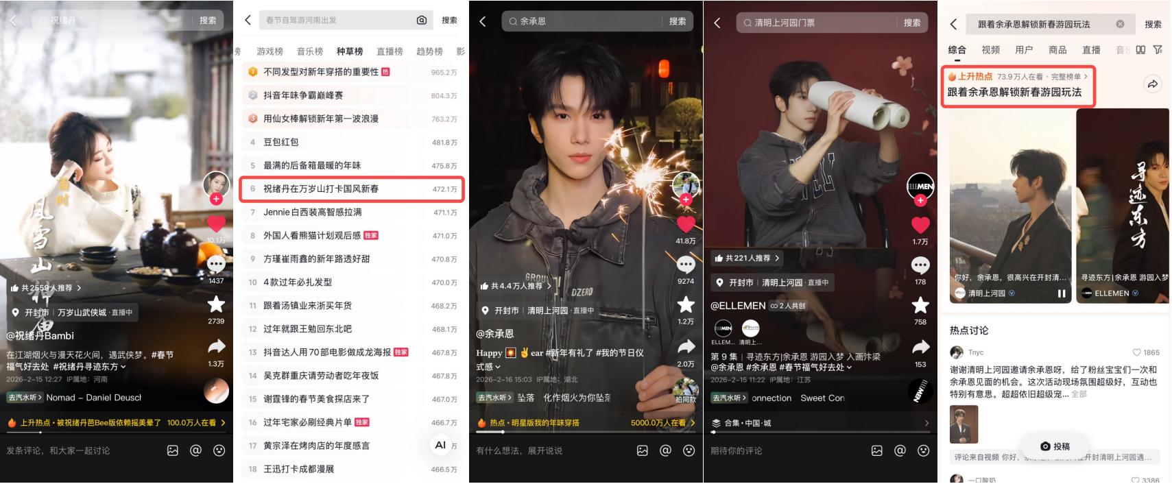 想要在春節(jié)這個(gè)信息爆炸的節(jié)點(diǎn)占領(lǐng)用戶心智,必須擁有足夠堅(jiān)硬的內(nèi)容抓手。在開封,萬(wàn)歲山與清明上河園兩座底蘊(yùn)深厚的景區(qū),選擇了與明星深度綁定,將“國(guó)風(fēng)”這一宏大命題具象化為觸手可及的視覺(jué)盛宴。
