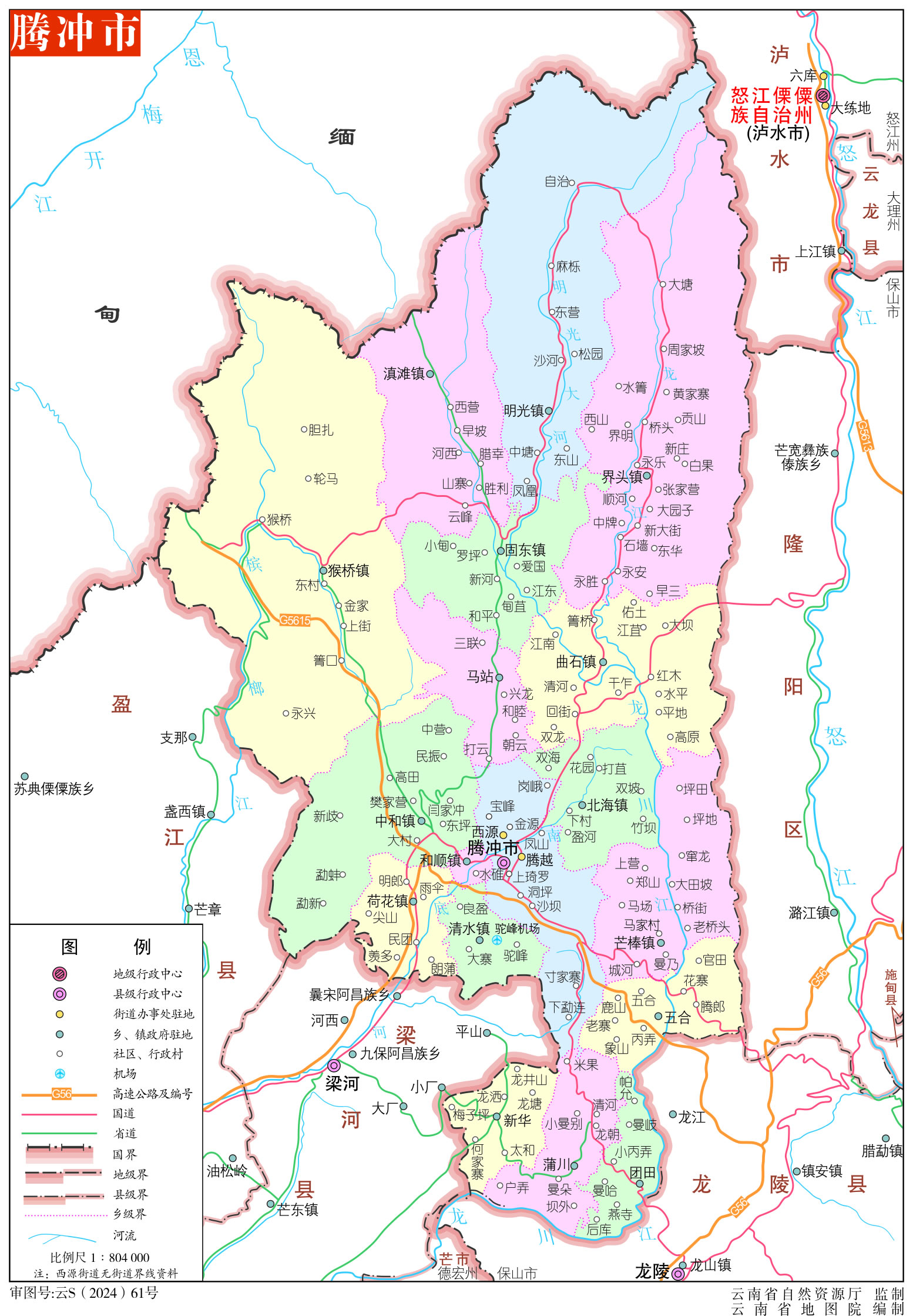 騰沖市轄2個(gè)街道、12個(gè)鎮(zhèn)、5個(gè)鄉(xiāng):