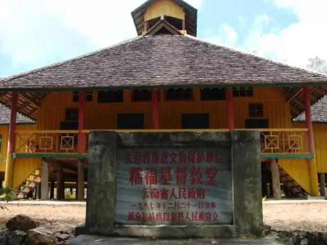 糯福鄉(xiāng)基督教堂清宣統(tǒng)二年(1910年)美國基督教浸信會緬甸景棟教會派牧師到孟連東乃等地傳教。民國五年(1916年),派撒臘比布到瀾滄?zhèn)鹘。民國九年?920年),美國牧師主持糯福教務(wù),于民國十一年(1922年)修建教堂。糯福教堂為瀾滄、雙江、滄源、耿馬等地的基督教會總部。為便于傳教,永偉業(yè)用拉丁字母為拉祜族創(chuàng)造了拉祜文字。糯福教堂總面積506.6平方米,融合西洋與當(dāng)?shù)孛褡褰ㄖ问健?987年被列為省級文物保護單位。