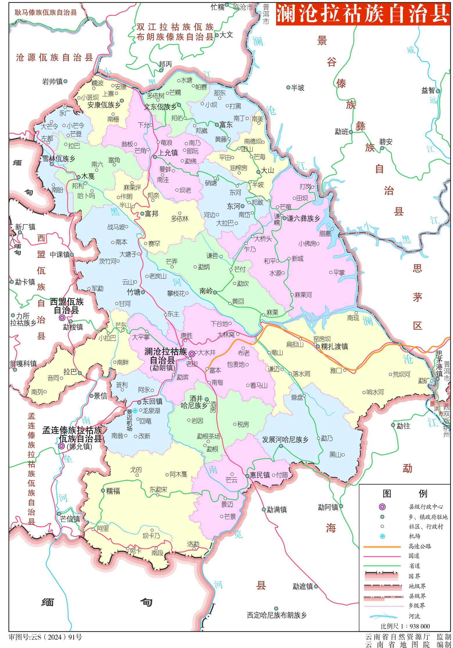 鄉(xiāng):發(fā)展河哈尼族鄉(xiāng)、謙六彝族鄉(xiāng)、糯福鄉(xiāng)、東河鄉(xiāng)、大山鄉(xiāng)、南嶺鄉(xiāng)、雪林佤族鄉(xiāng)、木戛鄉(xiāng)、酒井哈尼族鄉(xiāng)、拉巴鄉(xiāng)、竹塘鄉(xiāng)、富邦鄉(xiāng)、安康佤族鄉(xiāng)、文東佤族鄉(xiāng)、富東鄉(xiāng)