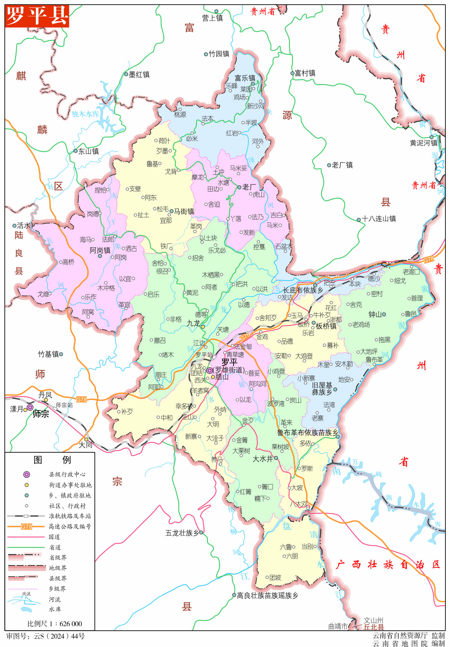 羅平縣轄3個(gè)街道、4個(gè)鎮(zhèn)、6個(gè)鄉(xiāng):